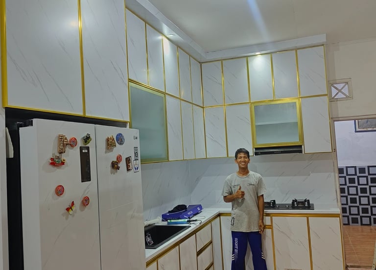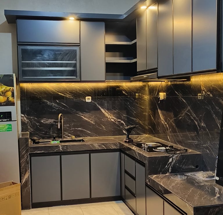 Kualitas kitchen set aluminium indokitchen sangat memuaskan, desainnya menarik dan tahan lama. Sangat direkomendasikan!